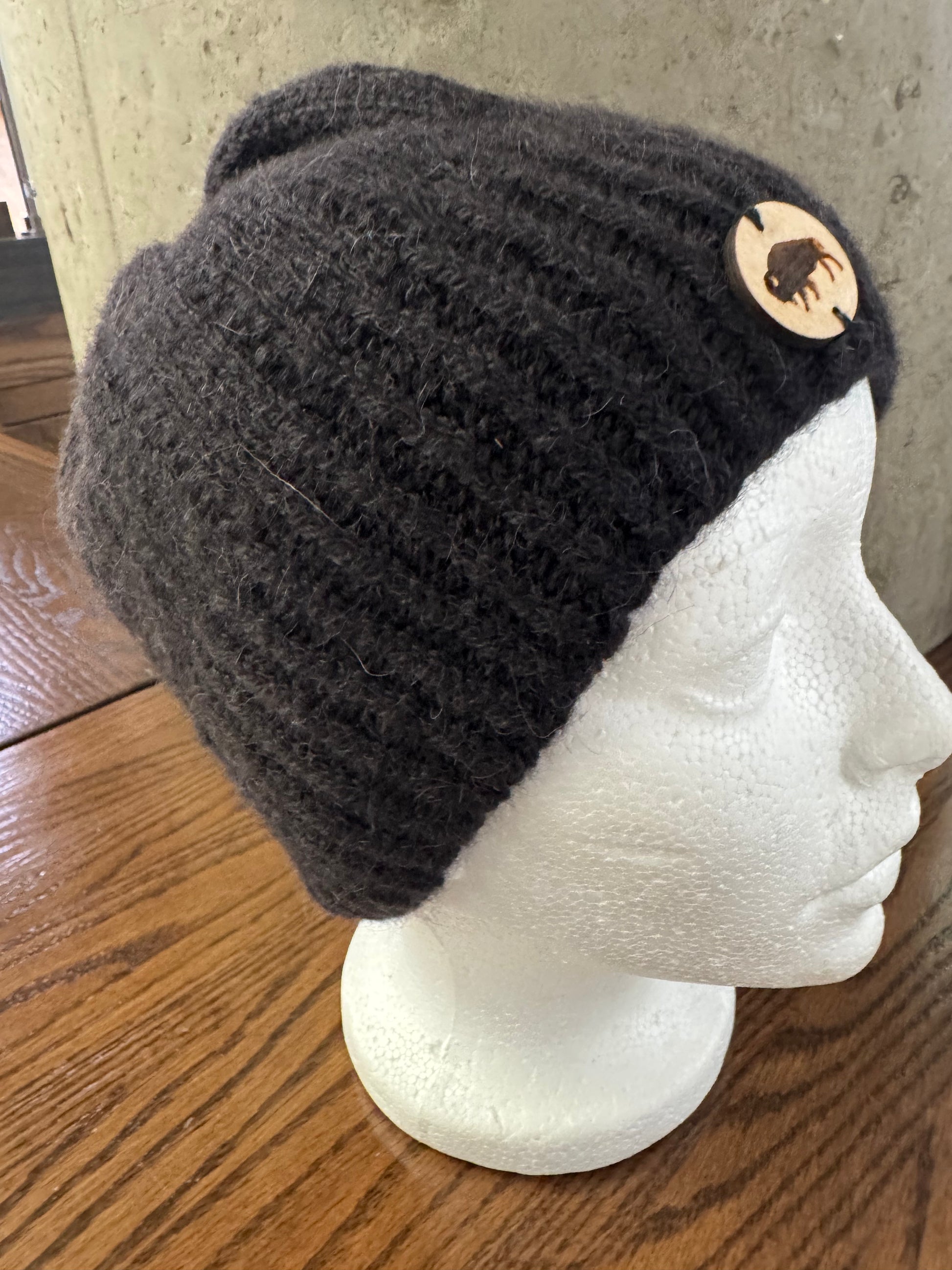 You've asked for them, we made them, we now have a Bison fibre beanie that is made from bison down. Hand knitted in Alberta, this warm, soft, light hat will definitely keep you warm!
